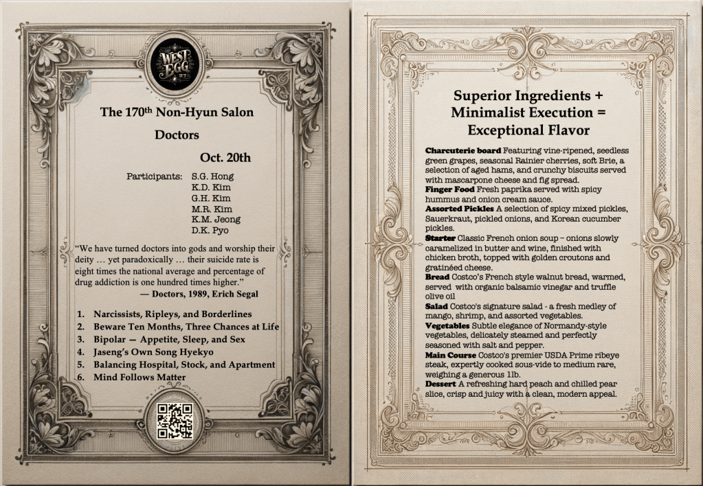 2. ‘Doctors’라는 주제에 걸맞게 Ph.D, MD, JD분들의 전공 영역을 넘나드는 지혜와 내공을 십분 느낄 수 있는 흥미롭고 즐거운 시간이었습니다. 감사드립니다.